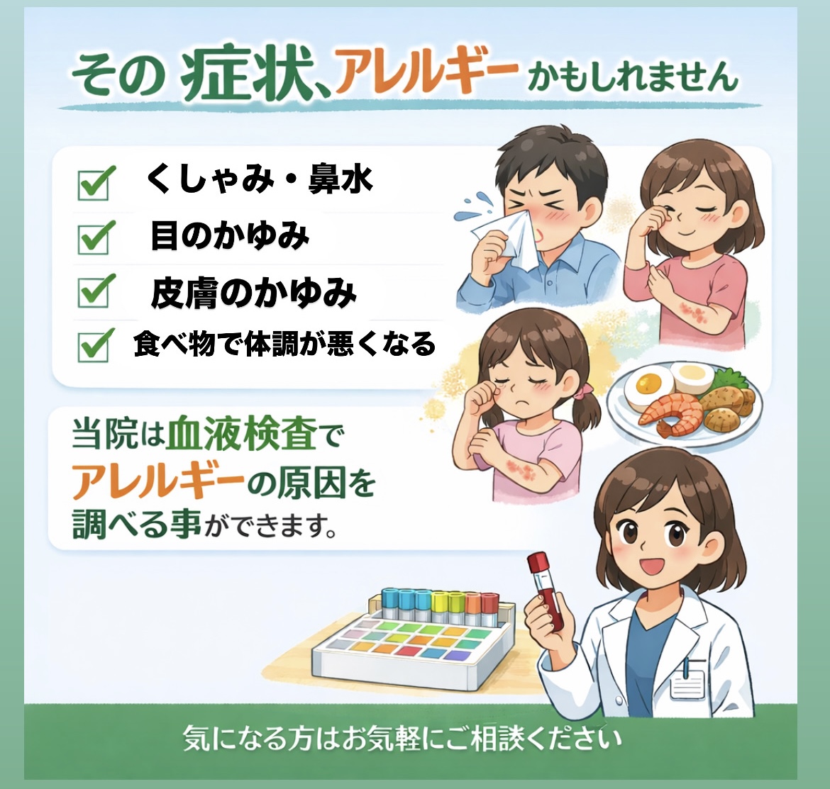 当院では血液検査によるアレルギー検査が可能です。
