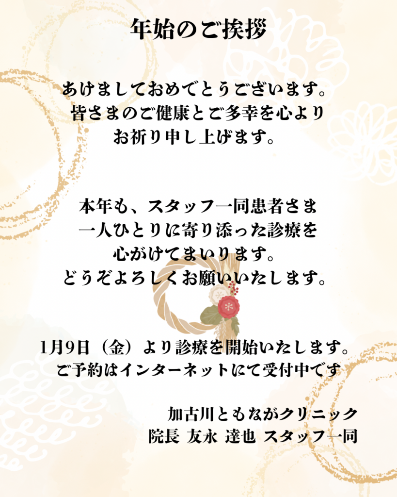 血液検査を含む健康診断は、お渡しに数日要しますので、年末年始休診前のお渡しは23日(火)までに健康診断を受けられた方に限ります。